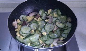 将新鲜的香菇和黄瓜洗净切片,热锅凉油,先将香菇下锅翻炒至变色,再加入黄瓜一起翻炒。加入适量的盐、生抽和鸡精调味即可。这道菜色泽诱人,口感清爽,香菇的鲜美与黄瓜的清爽完美结合,让人回味无穷。